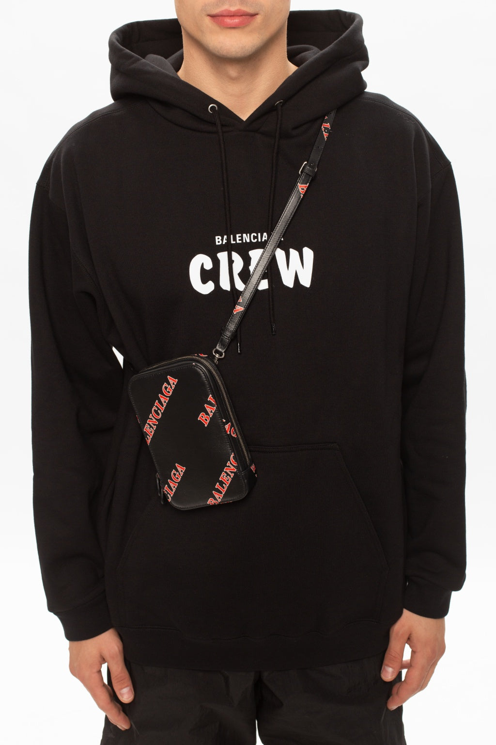 Balenciaga Black Calfskin Leather Sport Print Phone Holder Bag