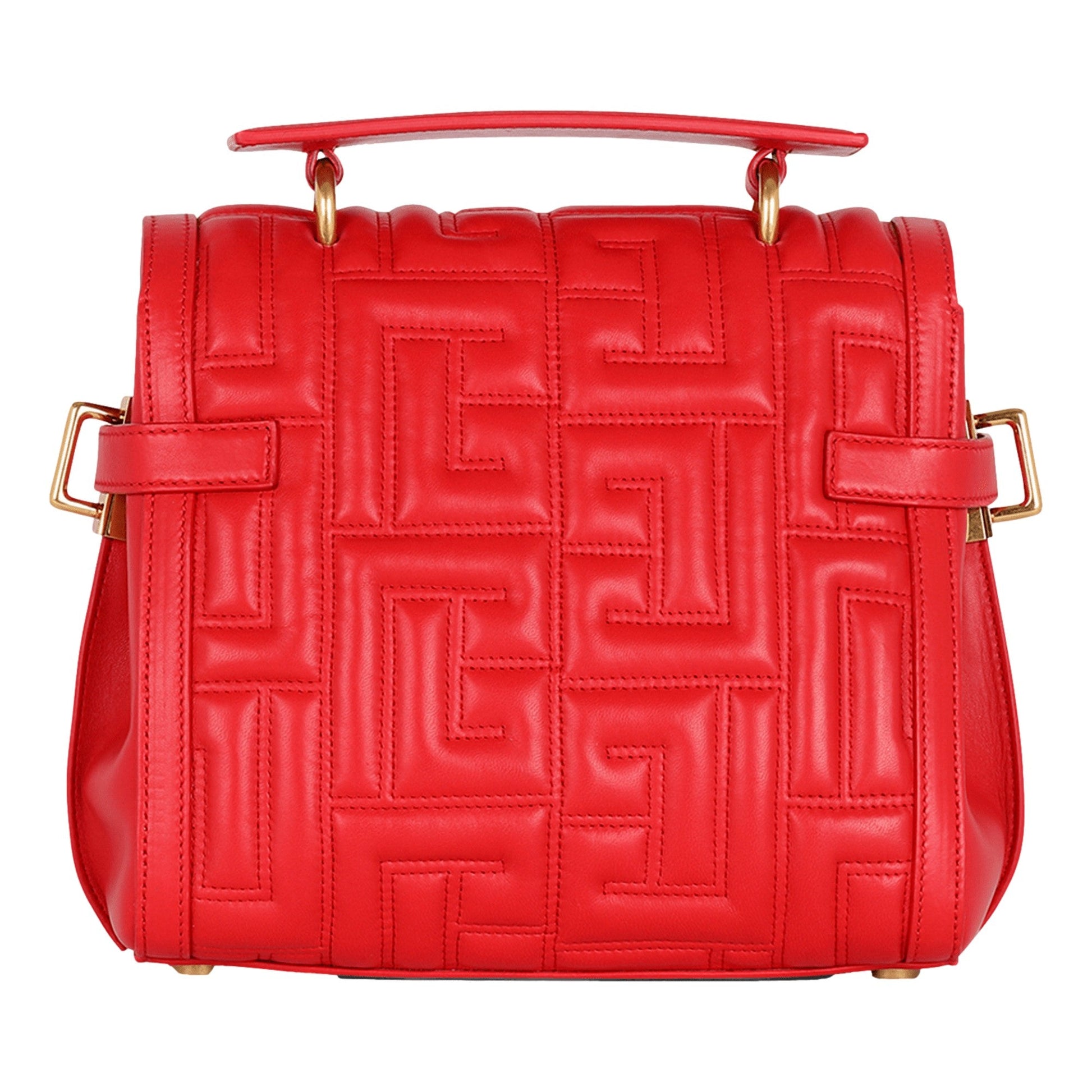 Balmain B-Buzz 23 Red Tote Crossbody Shoulder Bag Quilted Calf Leather