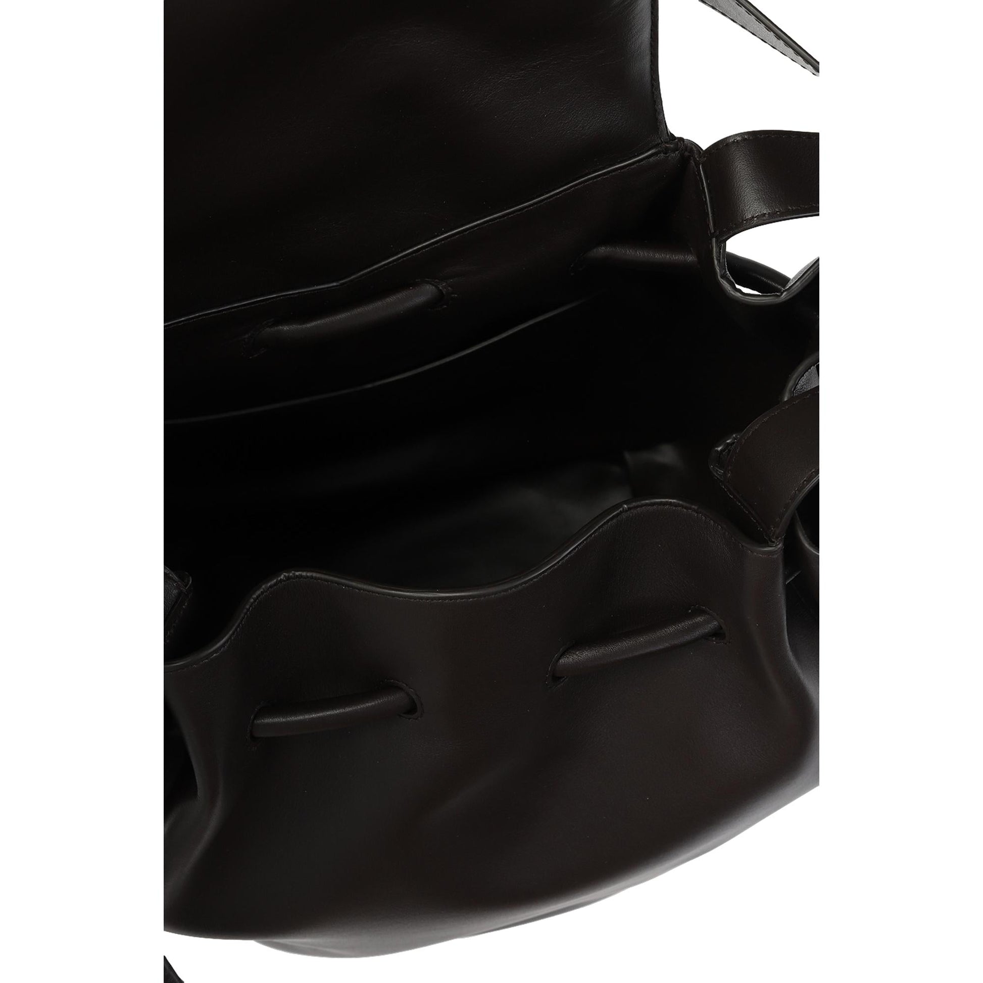 This Large Beak Handbag in the color nero is crafted in supple calfskin leather. This gorgeous black leather handbag is the perfect every day bag to carry what you need day in and day out. The design a bucket style with drawstring closure as well as top handles and a shoulder strap.