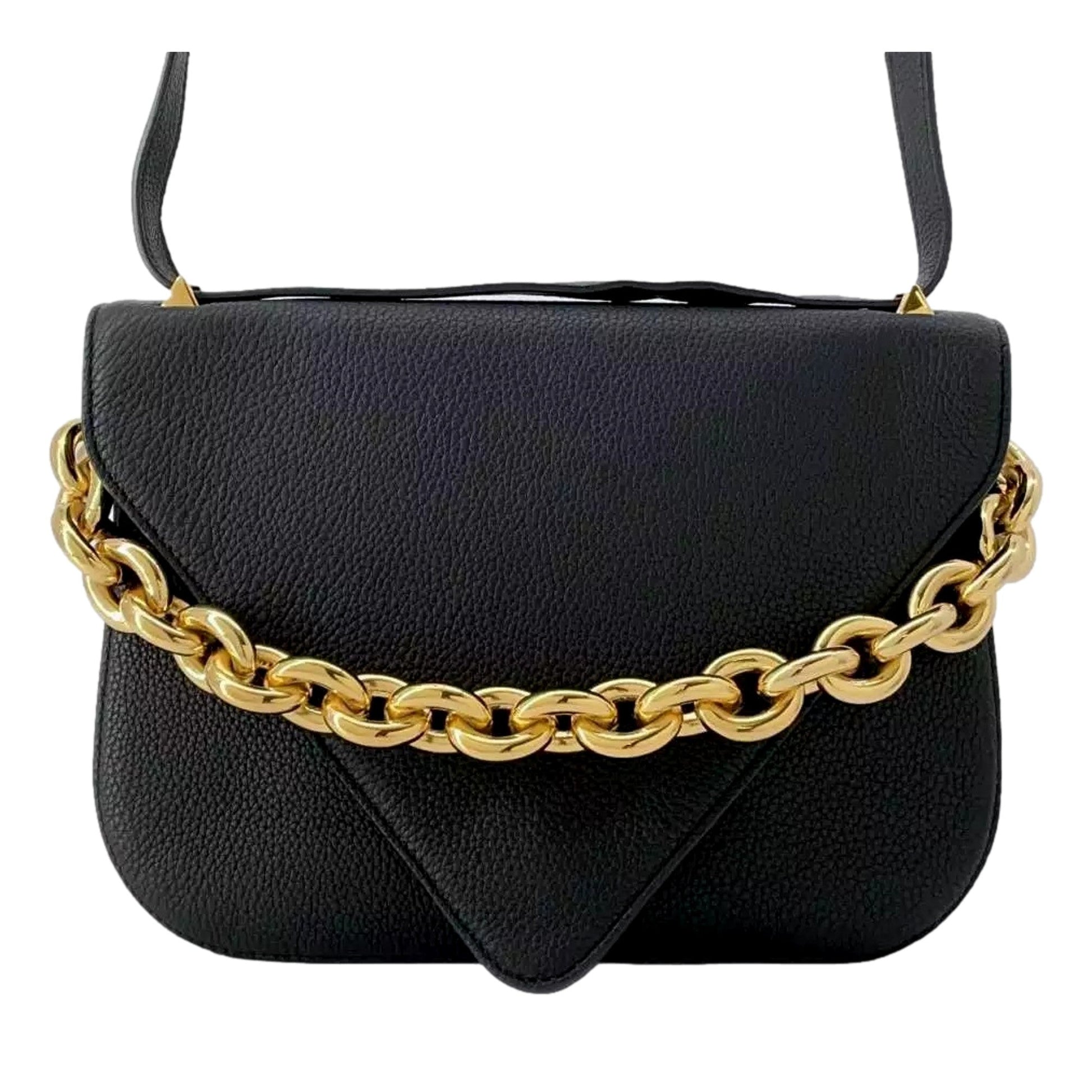 Ideal for both day and evening wear, the Bottega Veneta Mount Envelope Medium Shoulder Bag exudes an effortless, refined elegance. Its timeless design, combined with the contrast of black leather and gold accents, makes it a perfect complement to a wide range of outfits, whether you're dressing up for an evening out or adding a polished touch to your everyday look. This bag is a statement of understated luxury, reflecting the brand's mastery of craftsmanship and design.