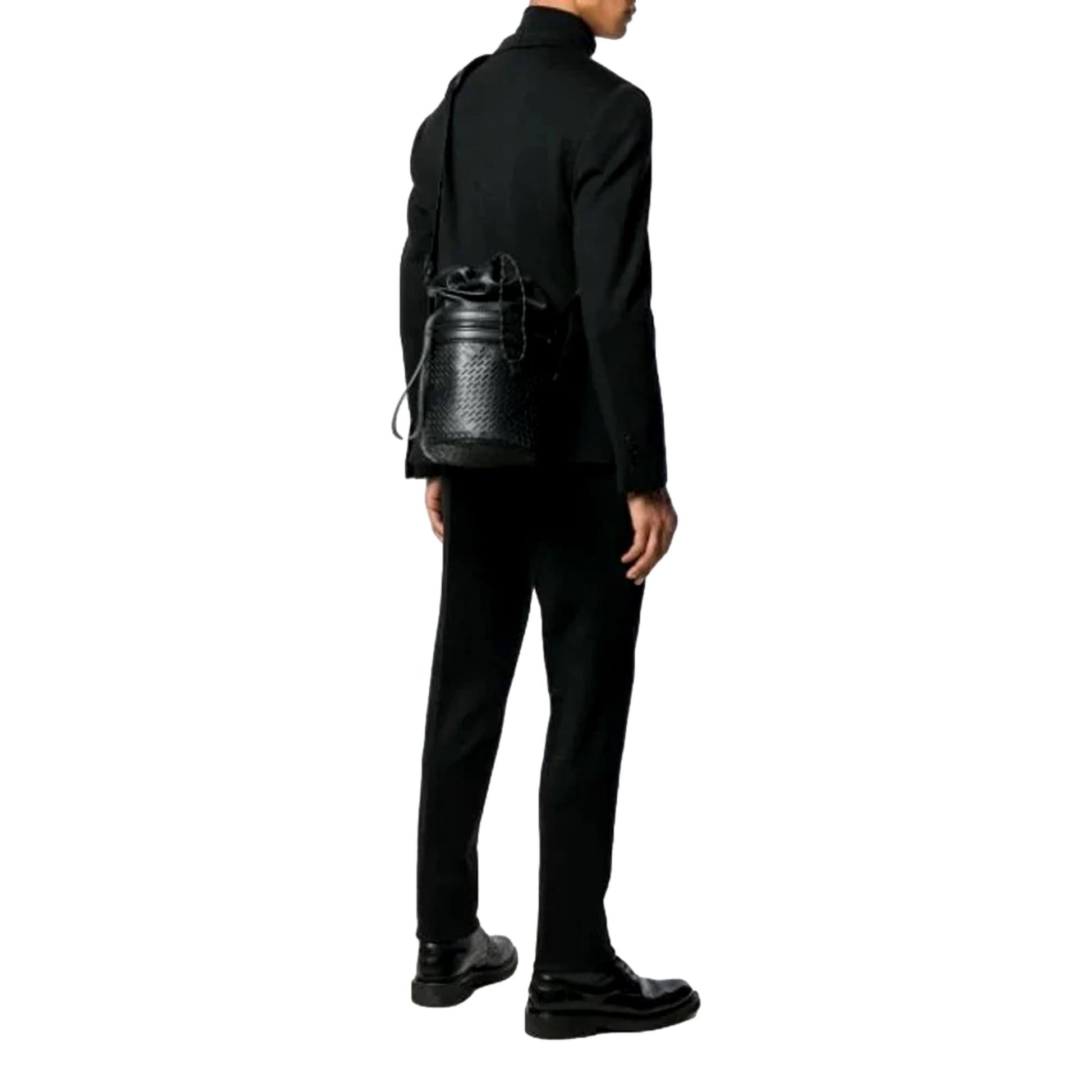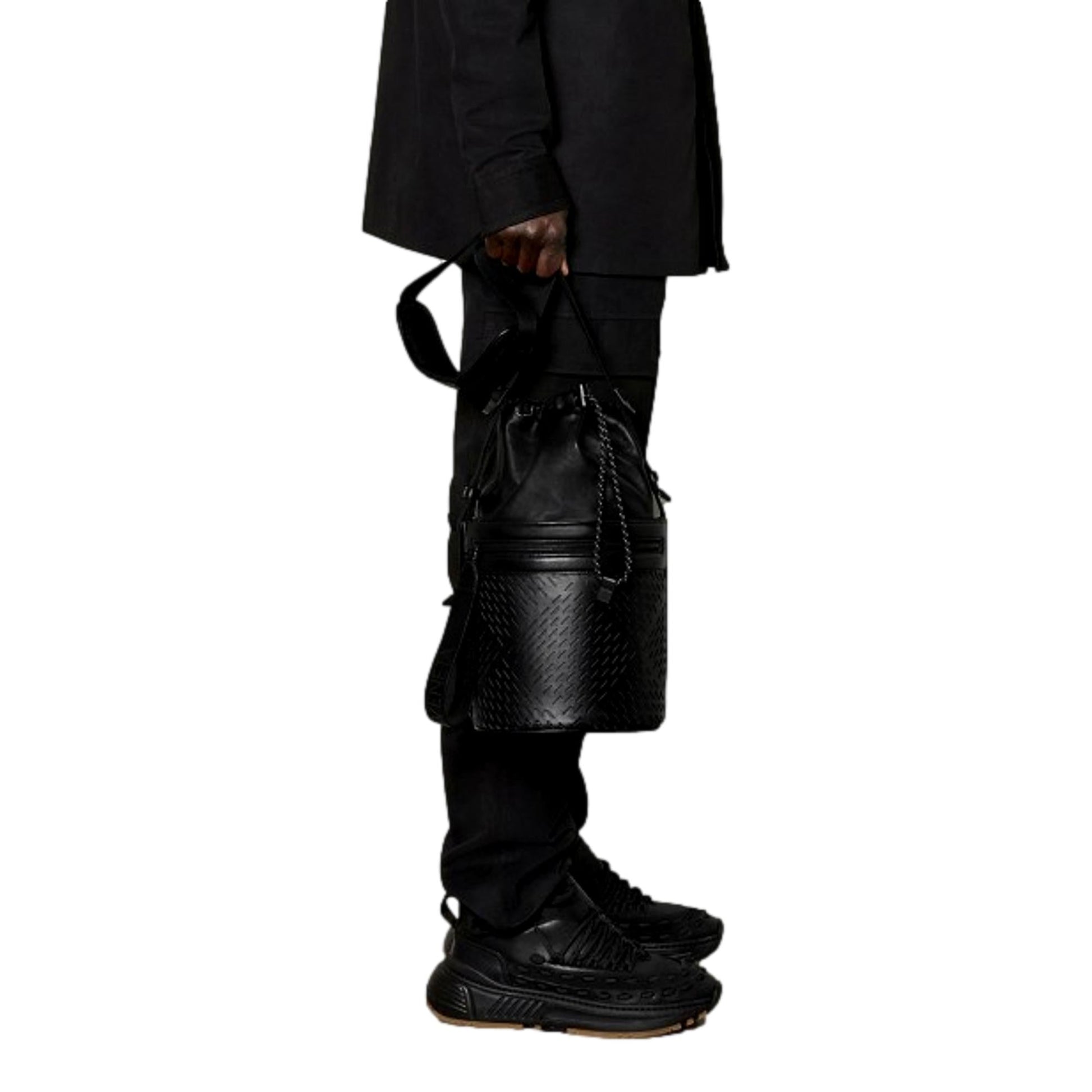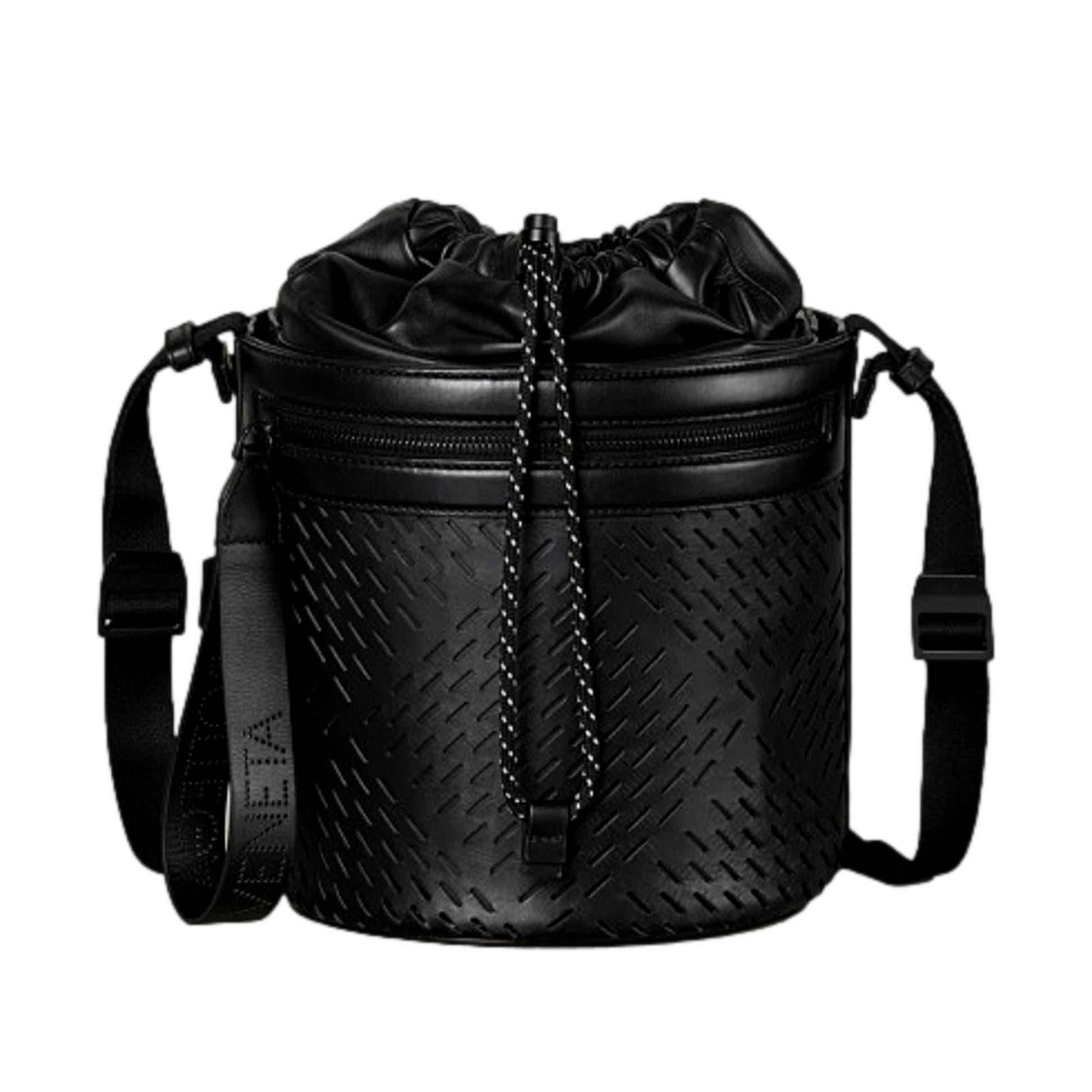Bottega Veneta Perforated Black Leather Drawstring Bucket Crossbody Bag