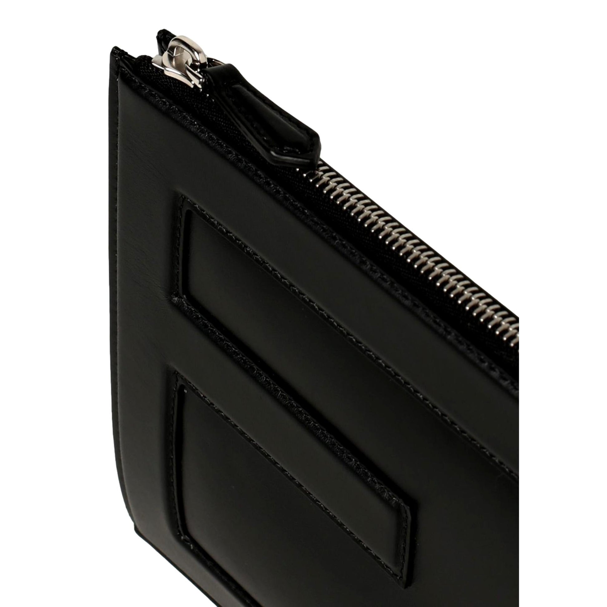 This sleek Fendi pouch is constructed of black calfskin leather and features silver-tone hardware, and the embossed Fendi baguette logo stitched onto the front face. The top zipper opens to a black fabric interior with a patch pocket and six card slots. This classic clutch is perfect for parties and special events, with the iconic style of Fendi!