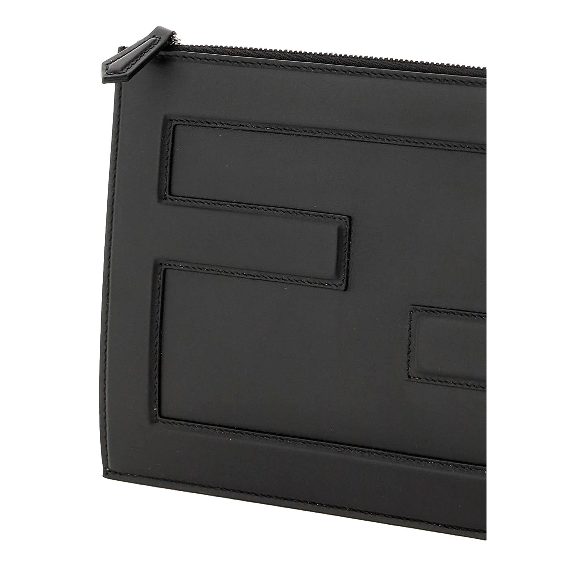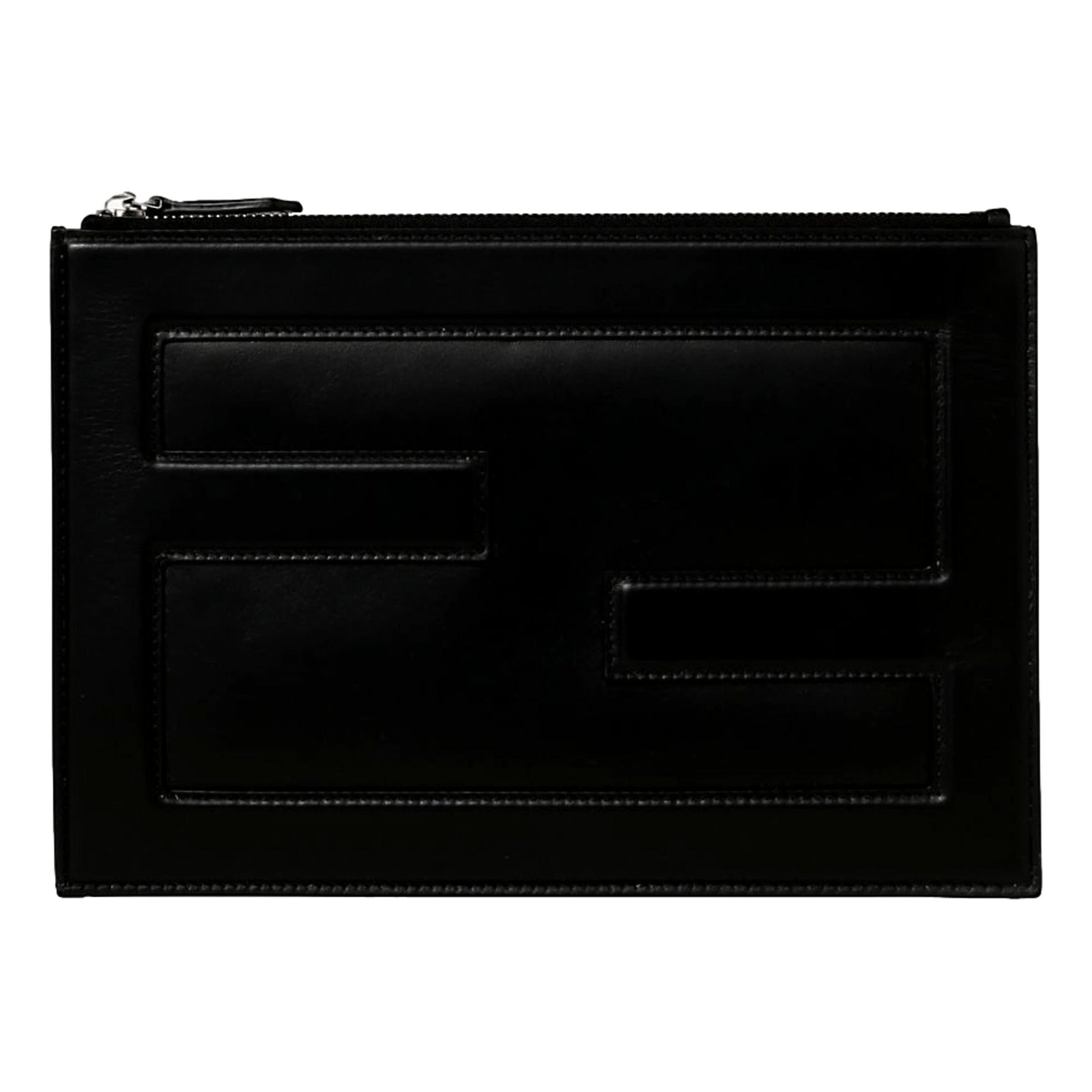 Fendi Baguette Black Calf Leather Embossed Clutch