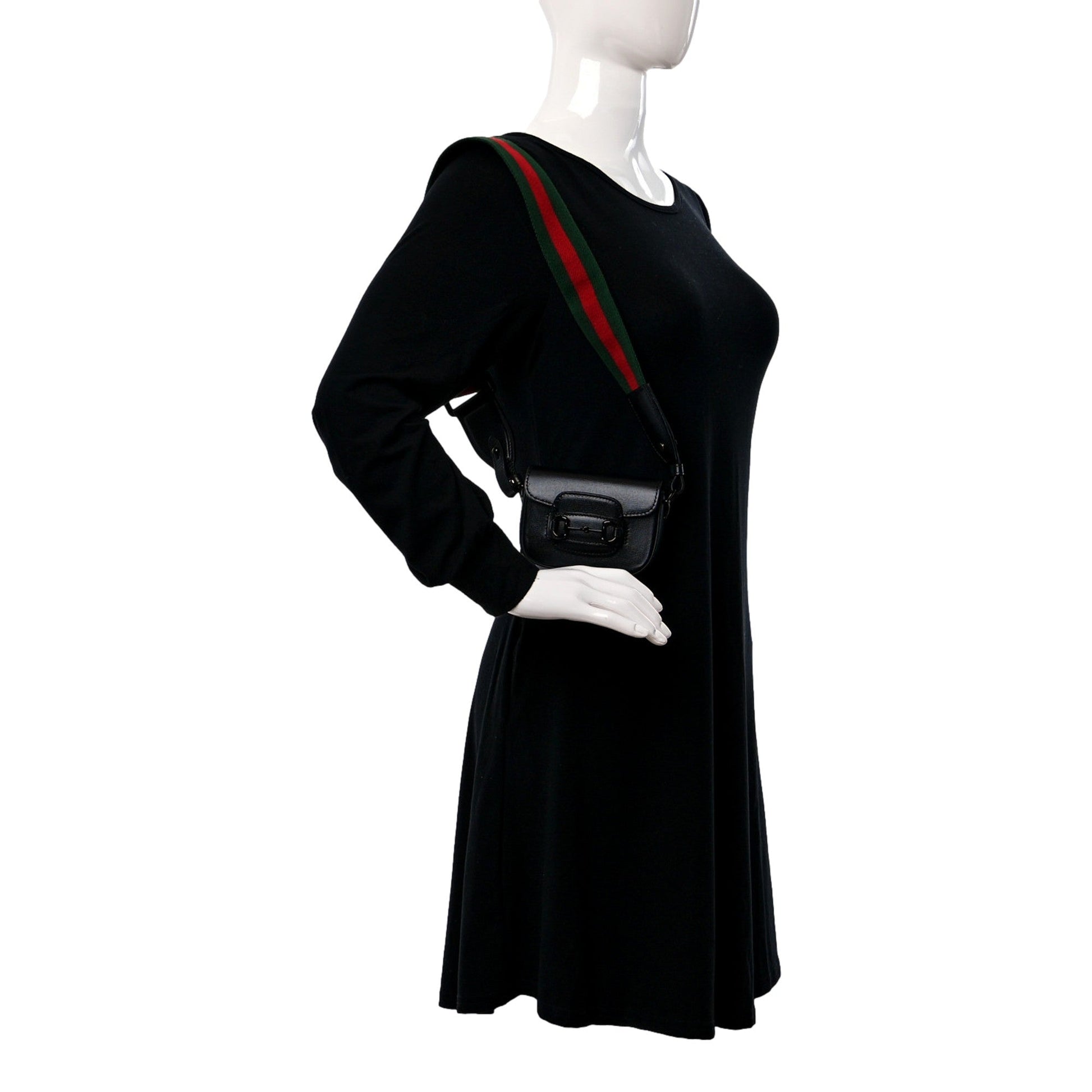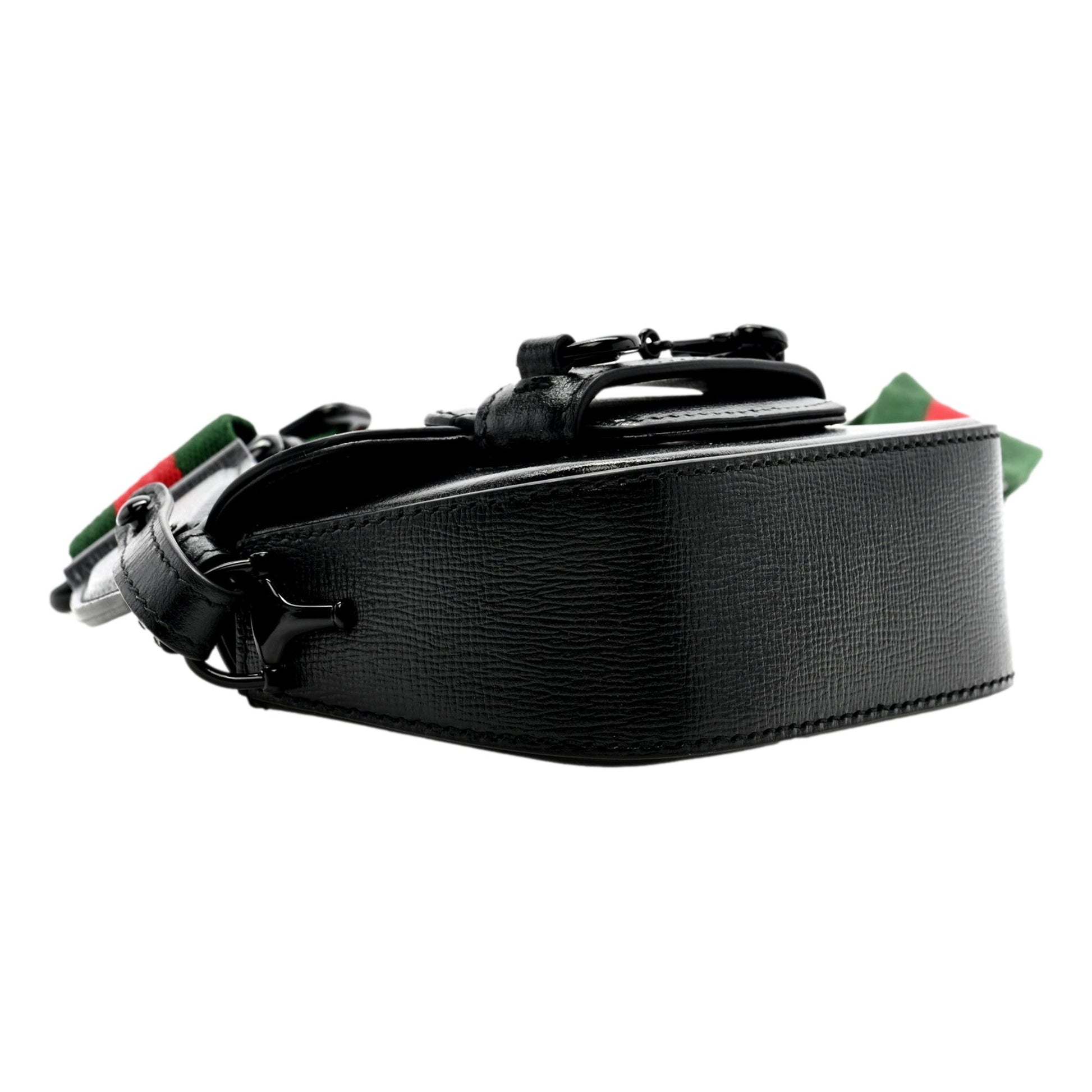 In all, the Gucci Azalea Calfskin Web Monochrome Horsebit 1955 Mini Handbag in Black is a luxurious accessory that balances modernity with heritage, offering a chic and refined addition to any wardrobe.