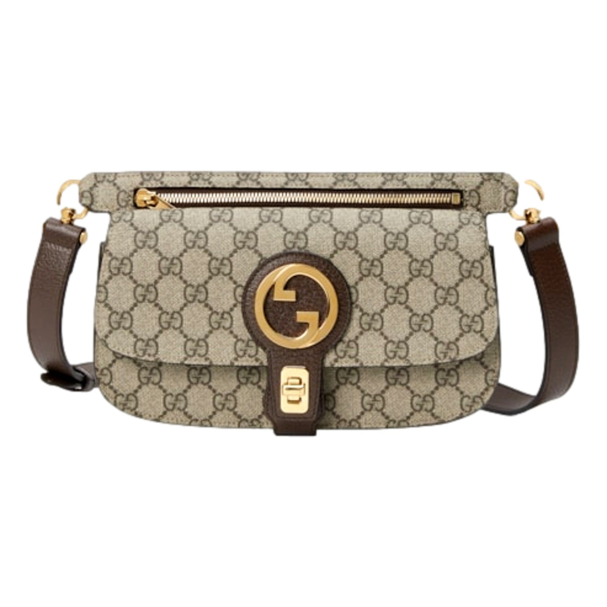 The Gucci GG Supreme Blondie Canvas Belt Bag in brown and beige is a chic and versatile accessory that effortlessly blends style with functionality. Crafted from the iconic GG Supreme canvas, known for its durable and sustainable design, this belt bag features a distinctive beige and brown pattern that exudes timeless elegance. The compact, yet spacious design offers enough room to carry your essentials, with an adjustable strap that allows it to be worn comfortably around the waist or crossbody. With a sleek and minimalist silhouette, this belt bag adds a touch of sophistication to any outfit, making it perfect for both casual outings and more refined occasions. Featuring the signature Gucci craftsmanship, this piece is a stylish and practical addition to any fashion-forward wardrobe.