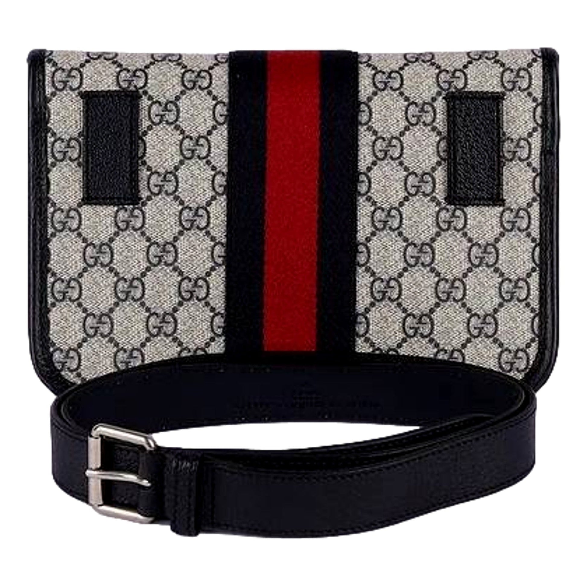 Gucci Ophidia Flap Belt Bag GG Beige Coated Canvas Navy and Red