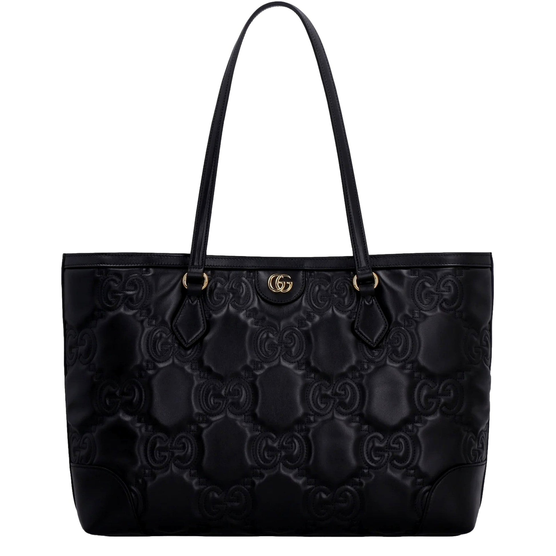 Gucci Ophidia Jumbo GG Matellase Medium Black Leather Tote