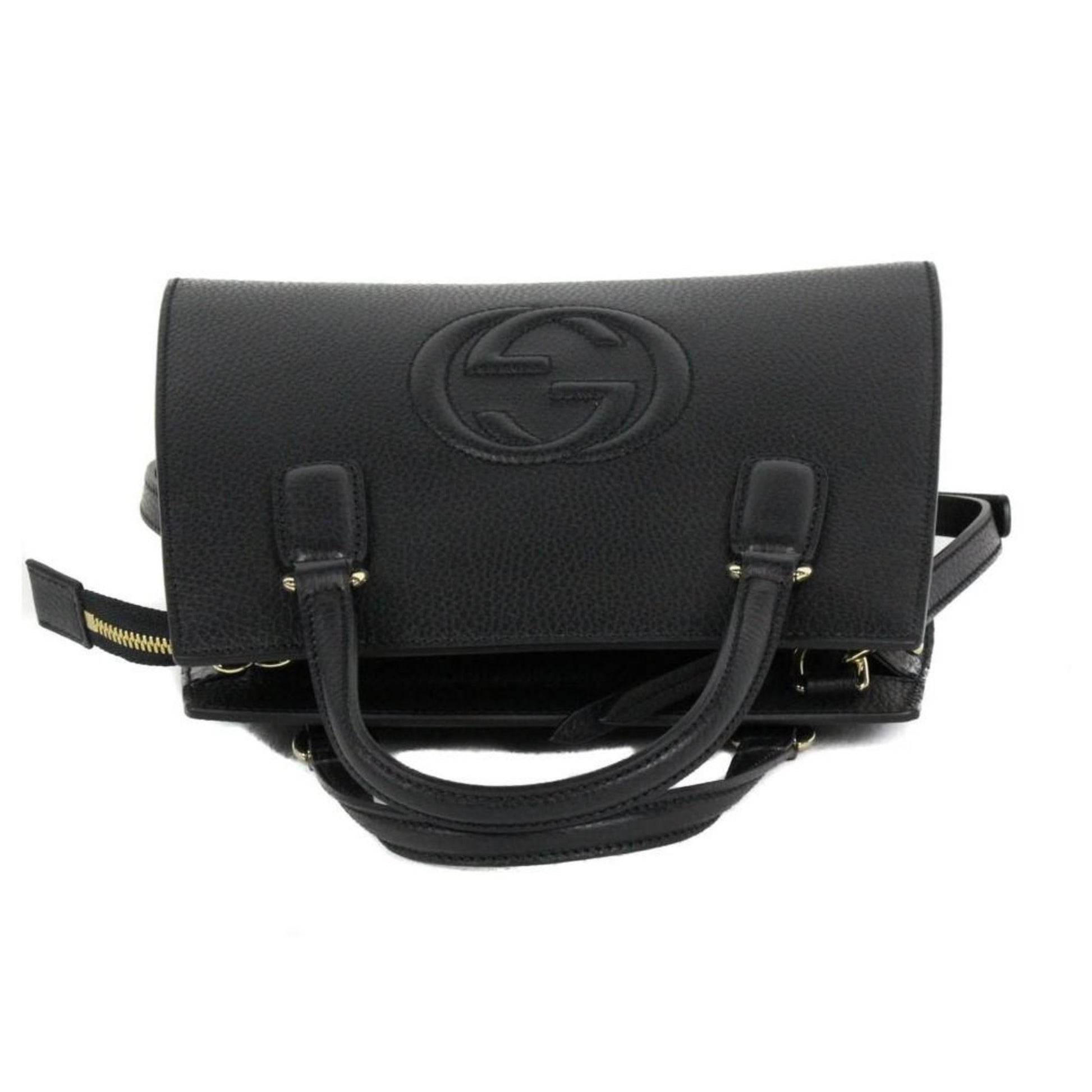 Gucci Soho Leather Structured Small Tote Crossbody Bag Black