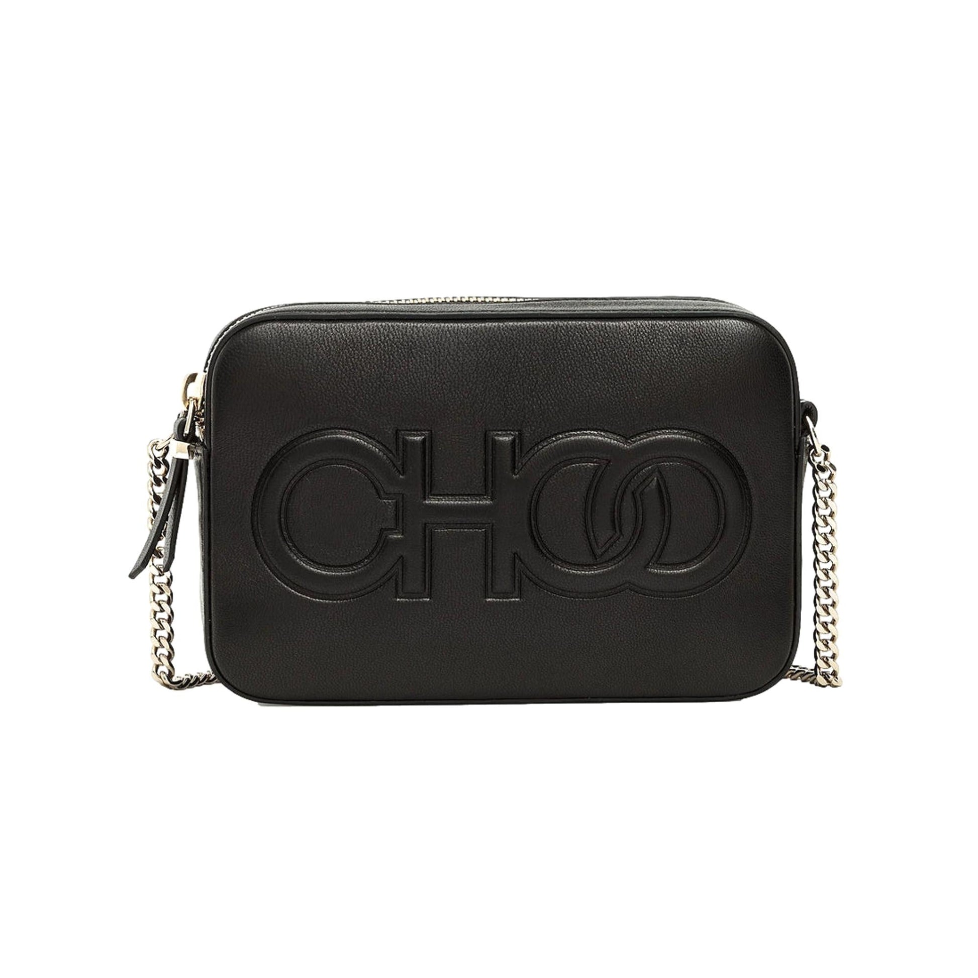 Jimmy Choo Balti Embossed Black Leather Camera Crossbody Bag