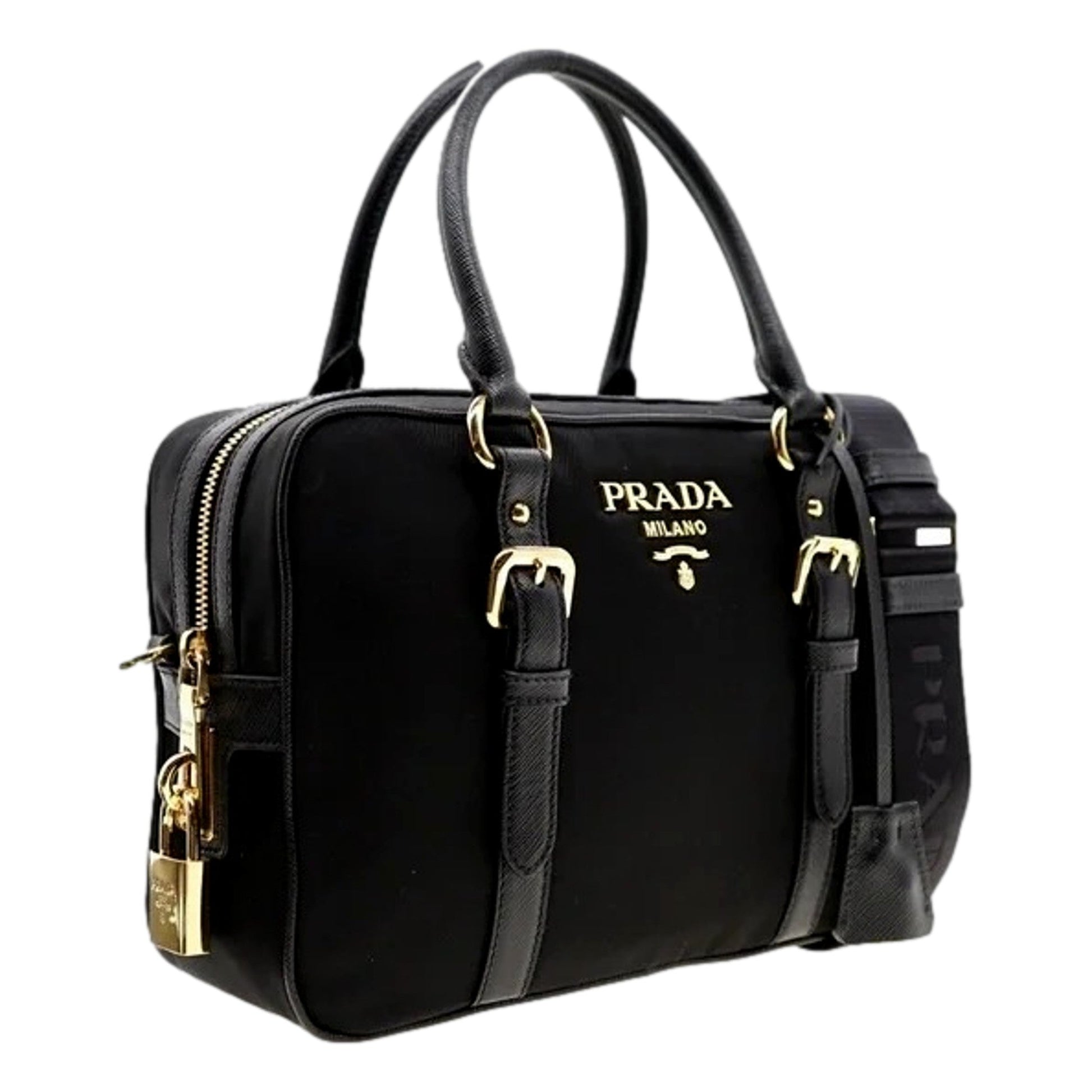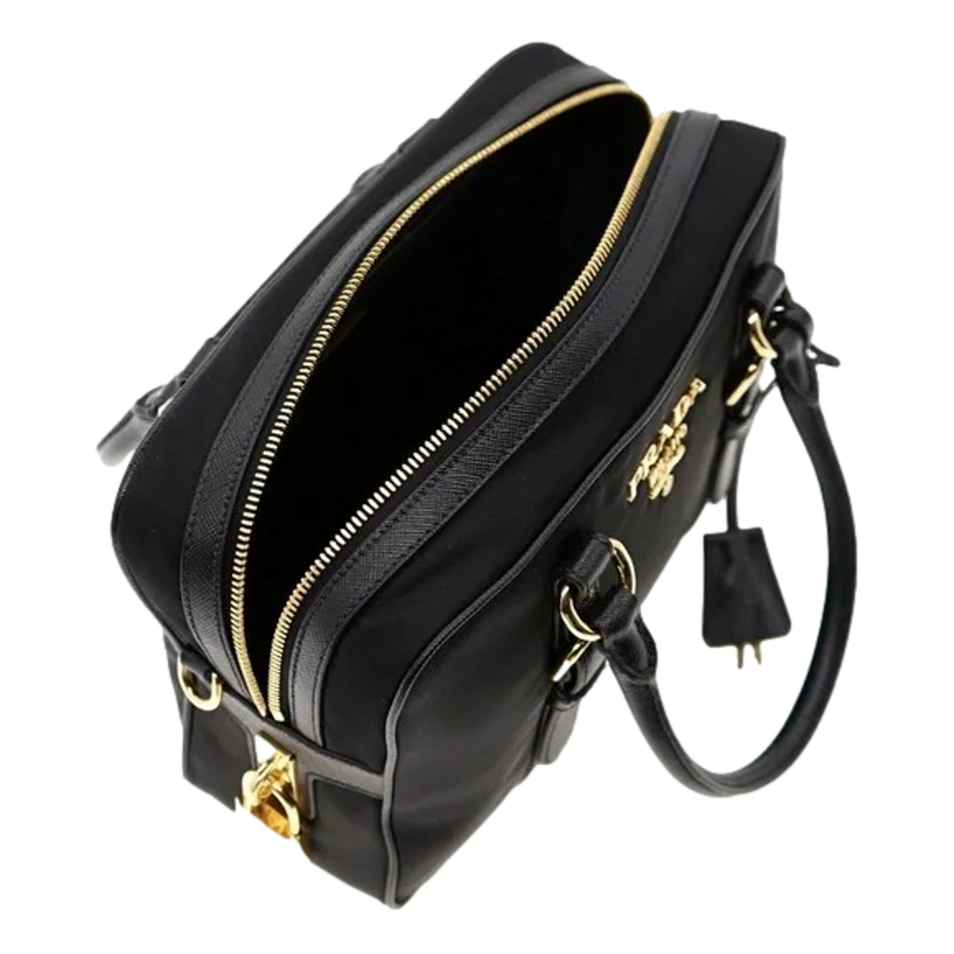 A sleek fusion of durability and elegance, the Prada Bauletto Satchel is crafted from signature Tessuto nylon with refined Saffiano leather trim in classic black. Featuring a structured silhouette, polished gold-tone hardware, and dual top handles, this versatile handbag embodies effortless sophistication—perfect for both daily wear and polished occasions.