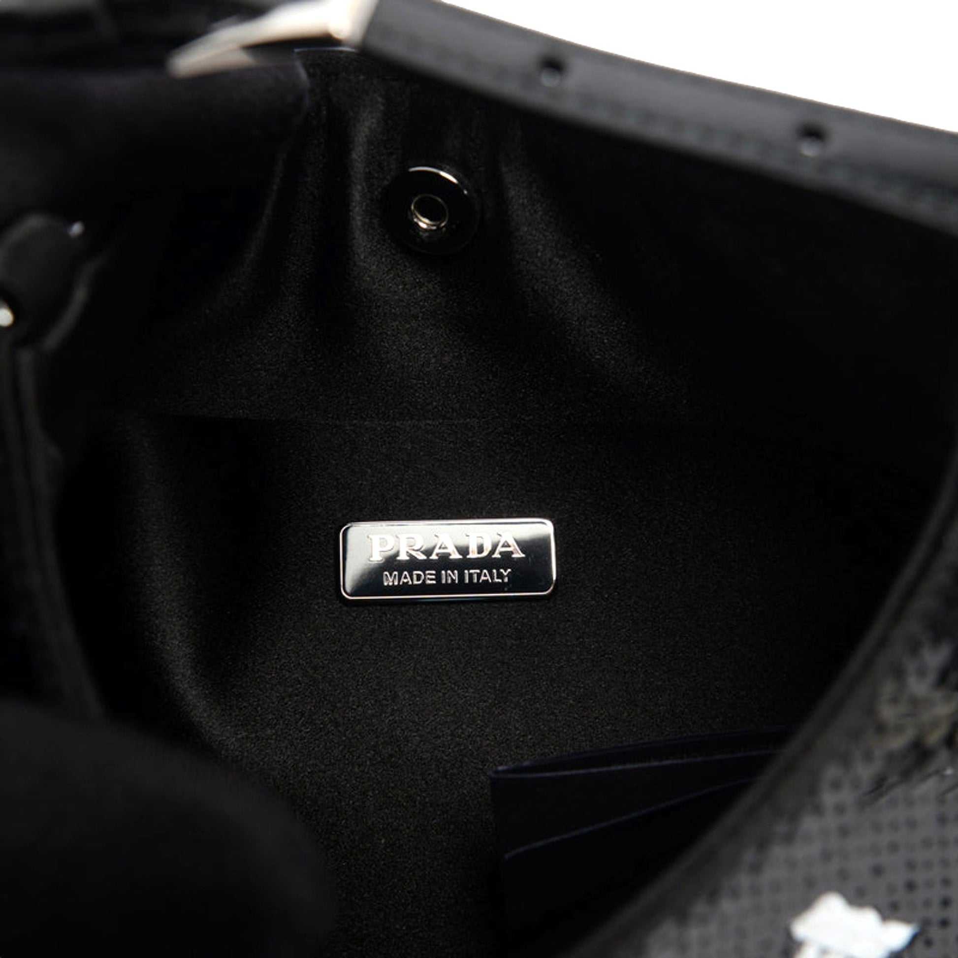 Prada Cleo Black and White Sequin Milano Logo Mini Leather Shoulder Bag