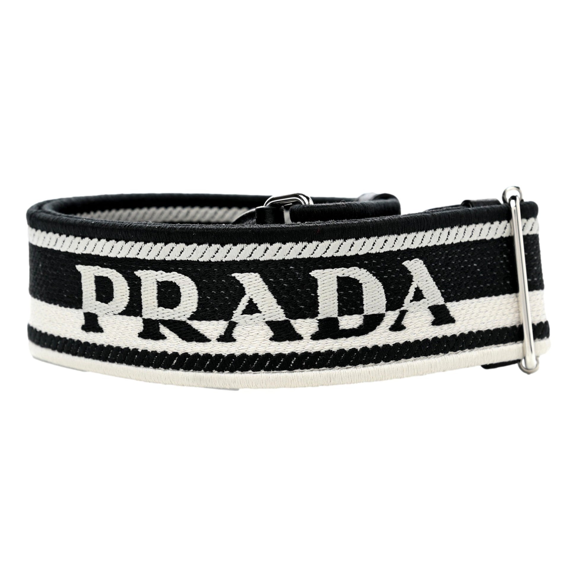 Its structured silhouette is both elegant and versatile, featuring gold-tone hardware and a monochrome Prada logo that subtly speaks to its sophistication. The top handle design adds a classic touch, while the detachable canvas Prada shoulder strap provides multiple styling options—from polished hand-carry to effortless crossbody. With its clean lines and iconic craftsmanship, this handbag is a statement in quiet luxury—perfect for those who appreciate understated refinement with an edge.