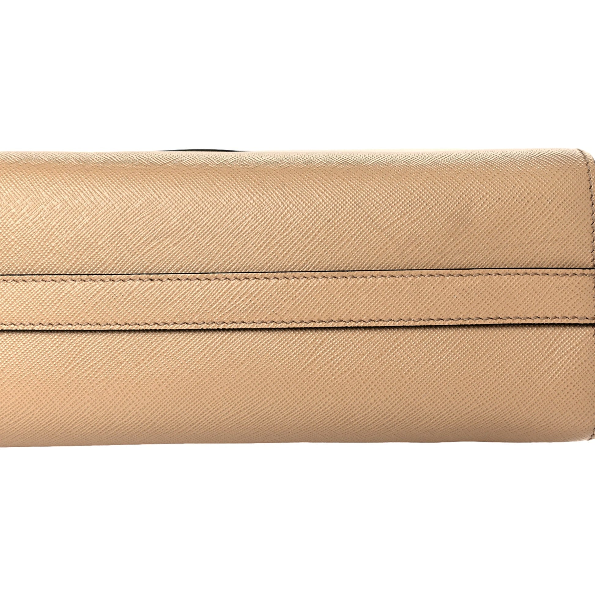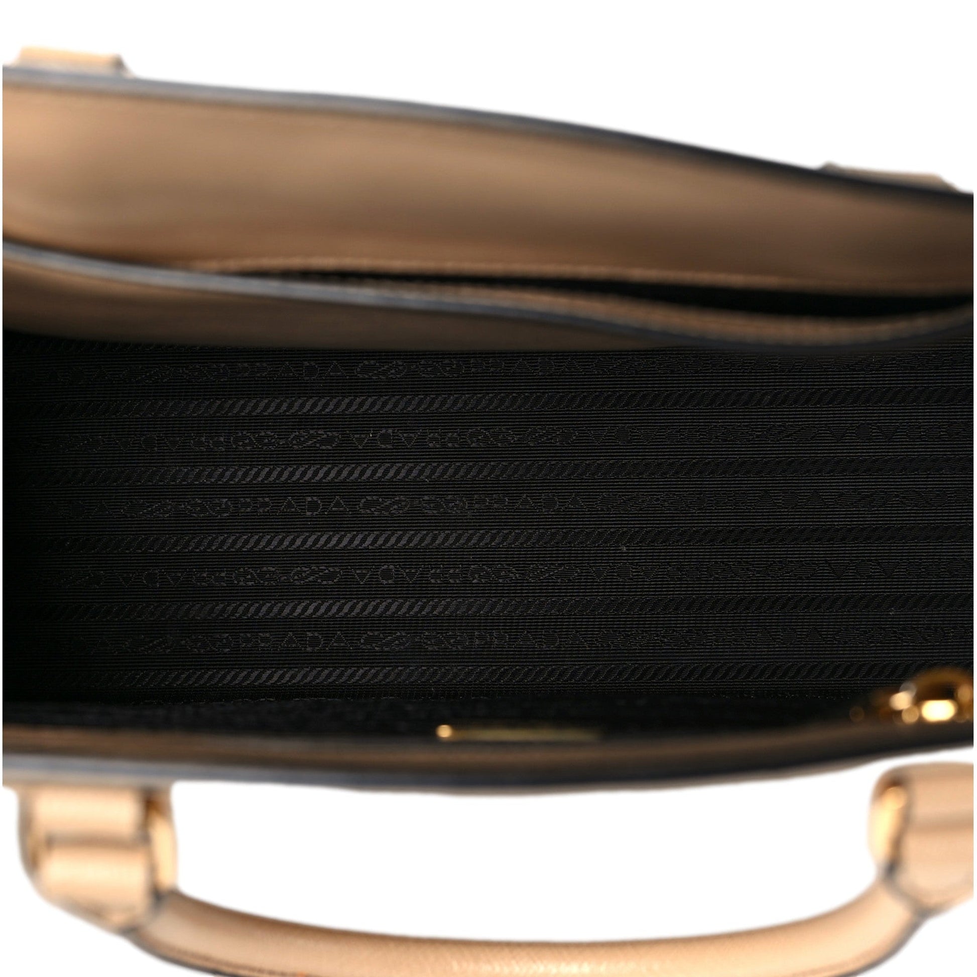Prada Saffiano Sabbia Sand Beige Lux Logo Embossed Medium Shoulder Tote Handbag