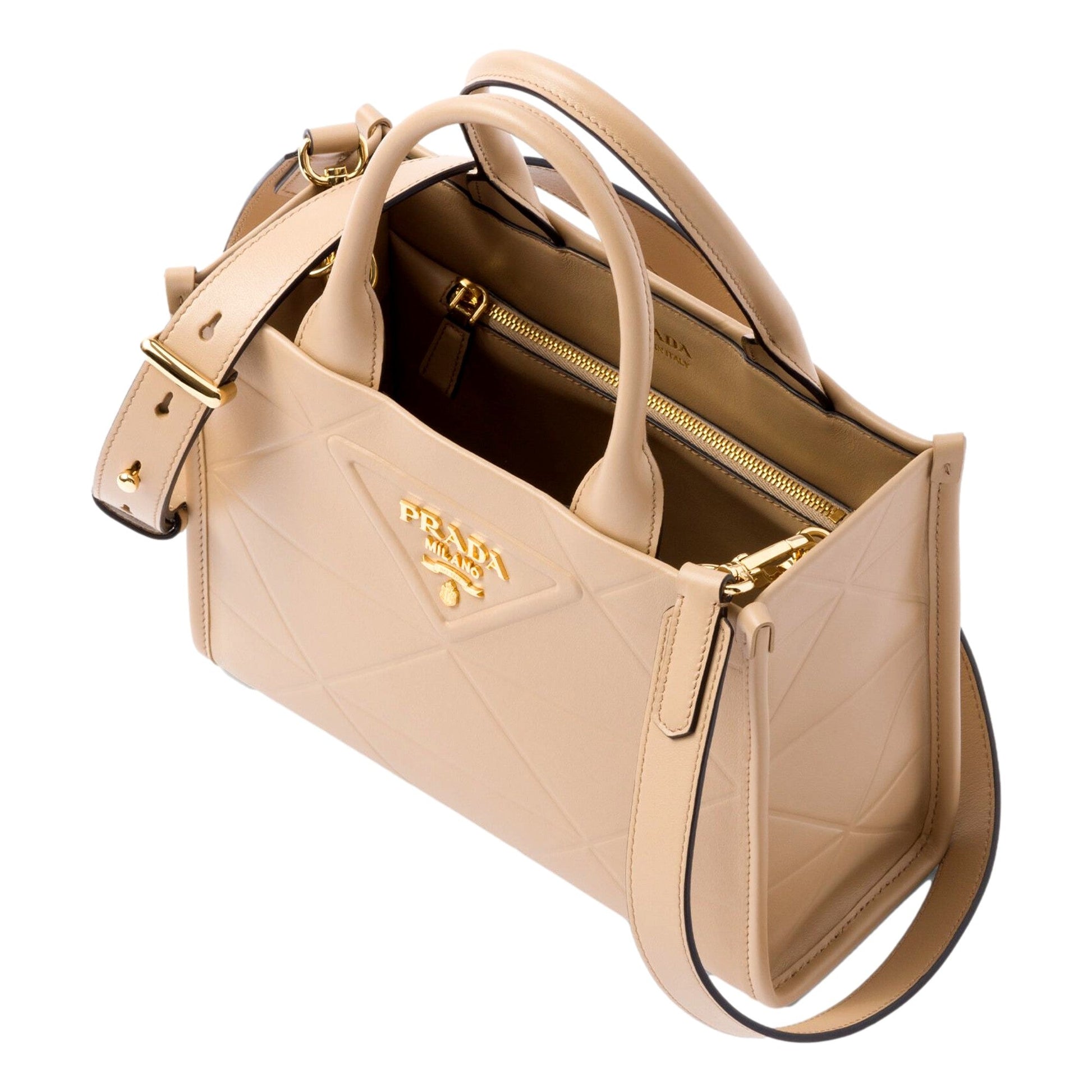 Prada Symbole Soft Calfskin Leather Sabbia Sand Triangle Quilted Mini Tote Bag