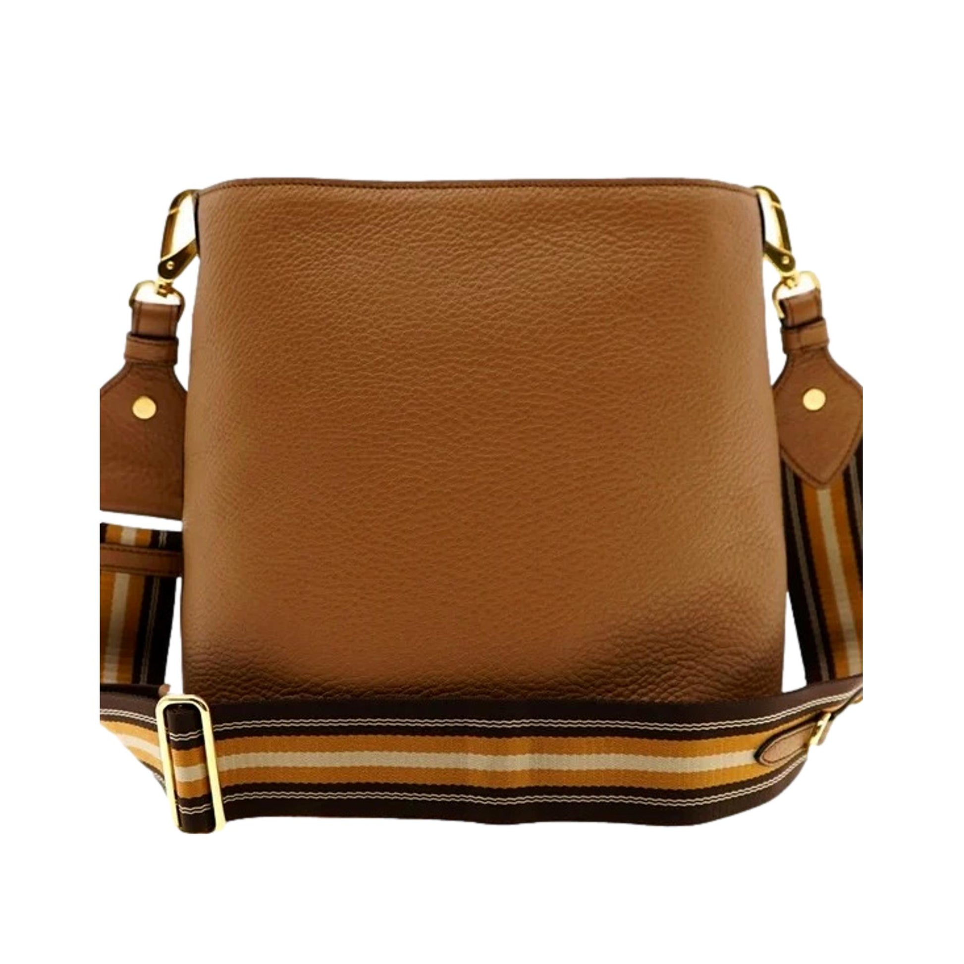 Prada Vitello Phenix Bucket Crossbody Bag Caramel Brown Web Strap