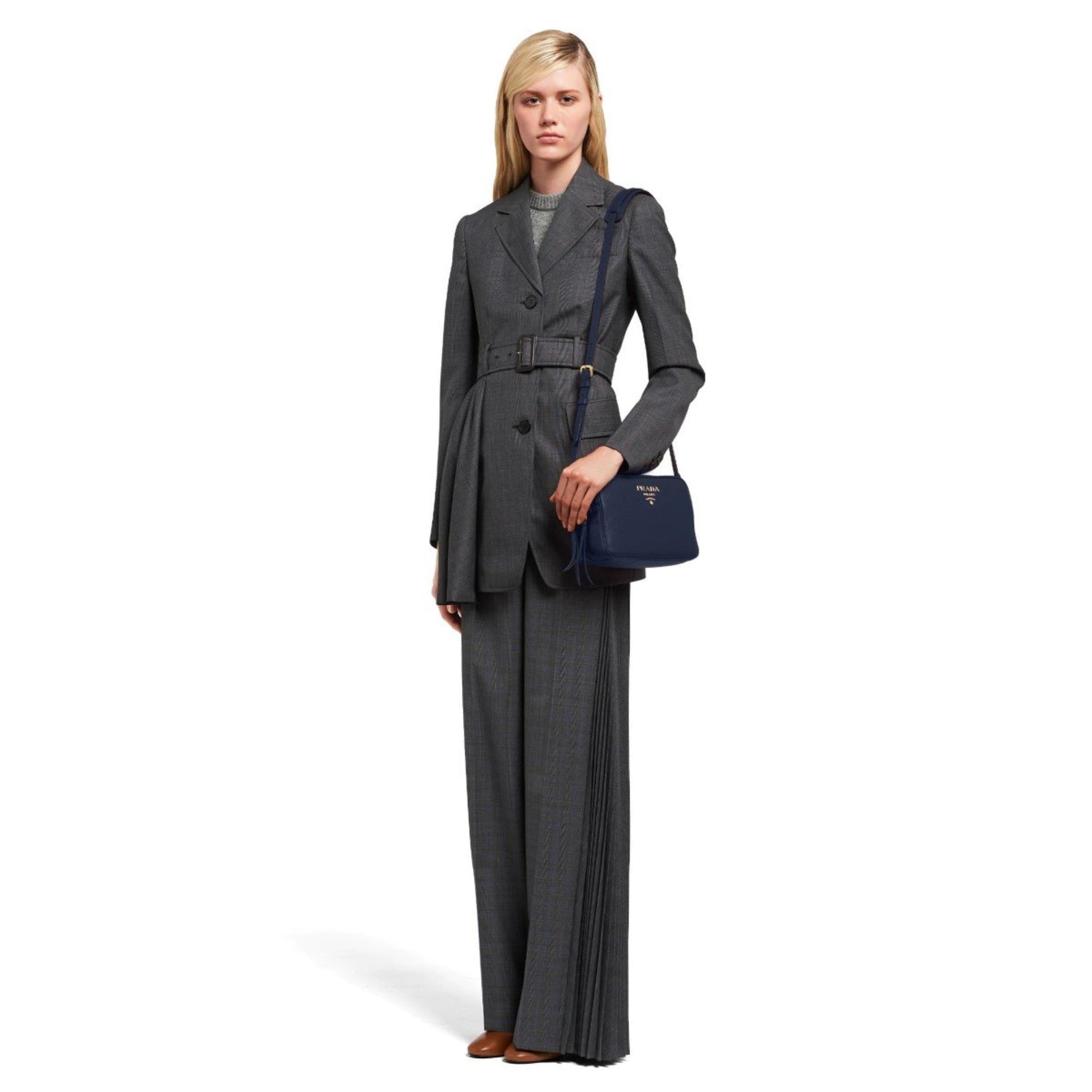 Prada Baltico Blue Vitello Phenix Leather Double Zip Crossbody Bag
