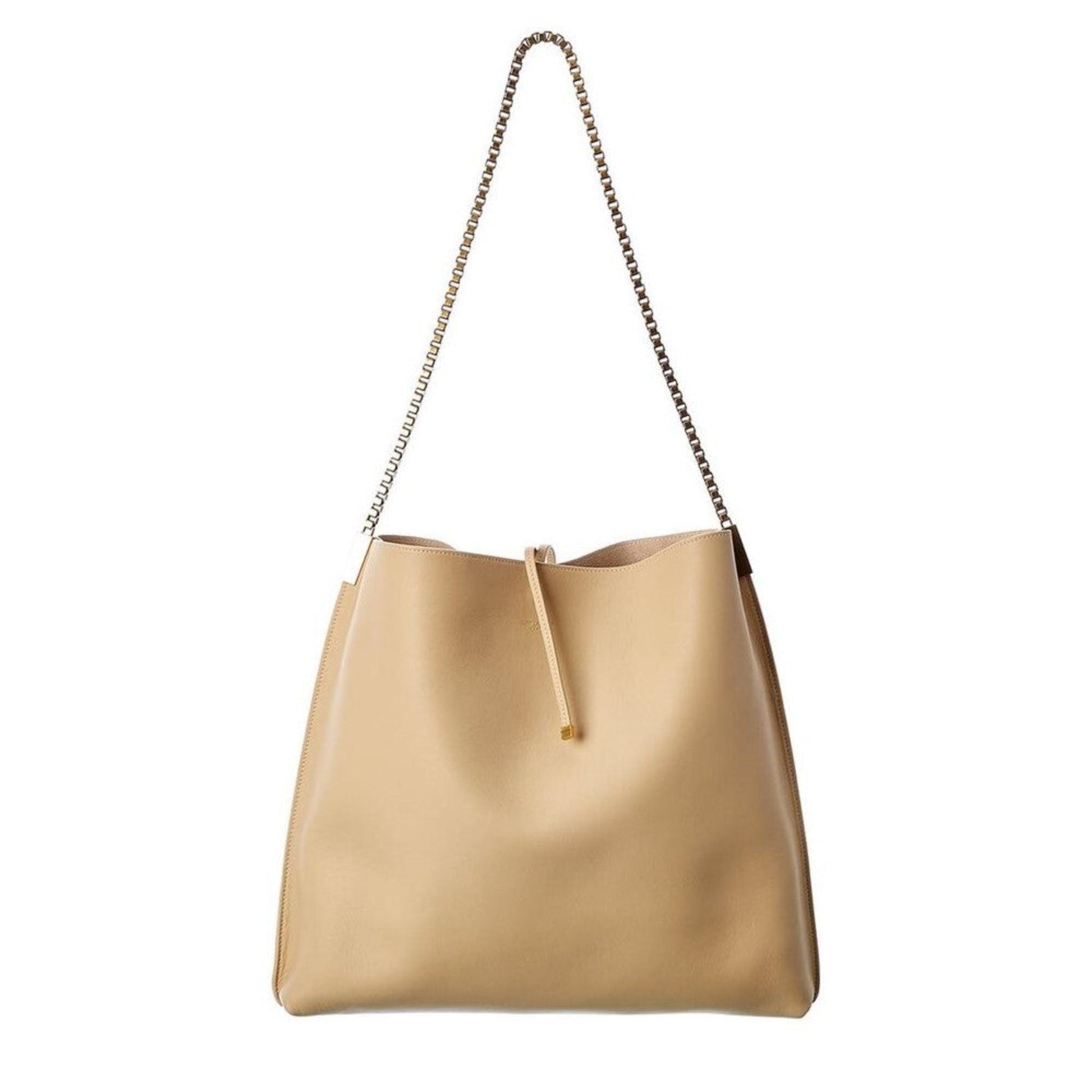 Saint Laurent Suzanne Beige Calfskin Leather Chain Hobo Bag