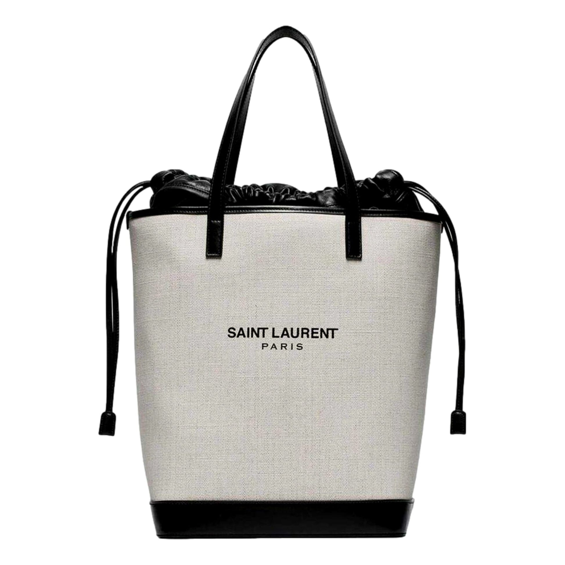Saint Laurent Teddy White Coated Linen Drawstring Bucket Bag