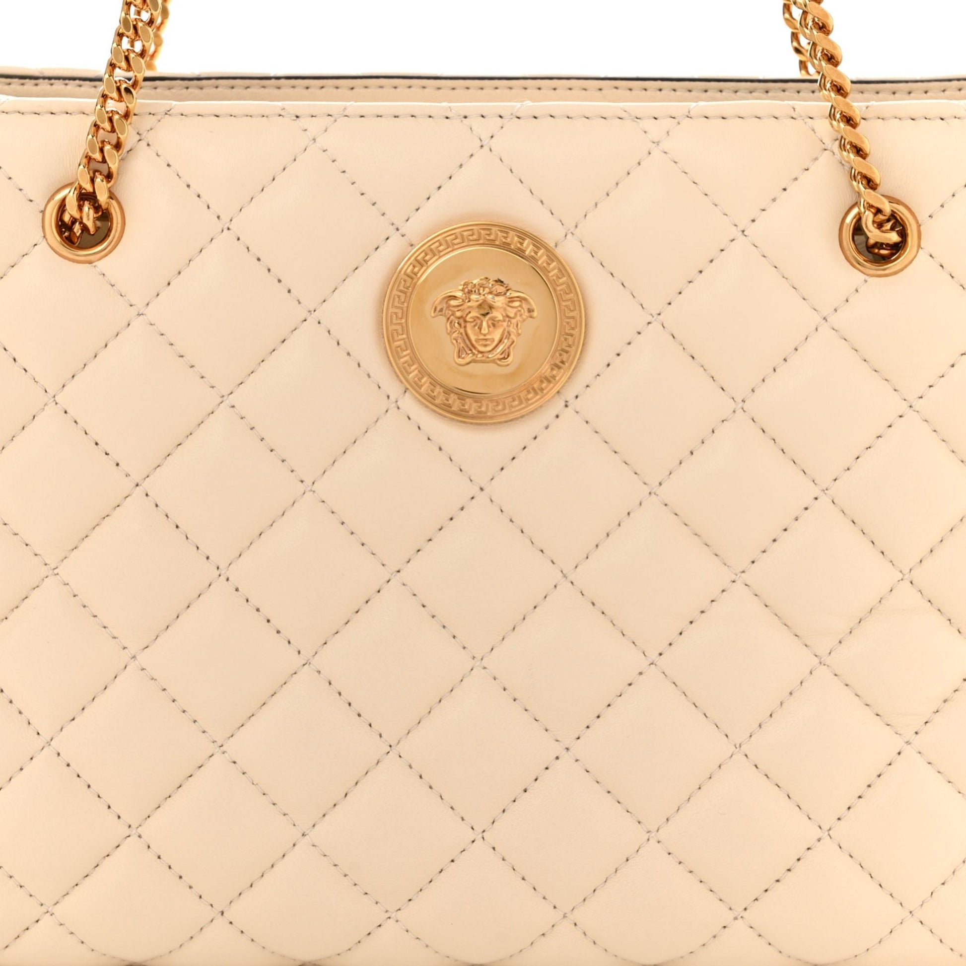 Versace La Medusa Nappa Quilted Beige Leather Large Tote Bag