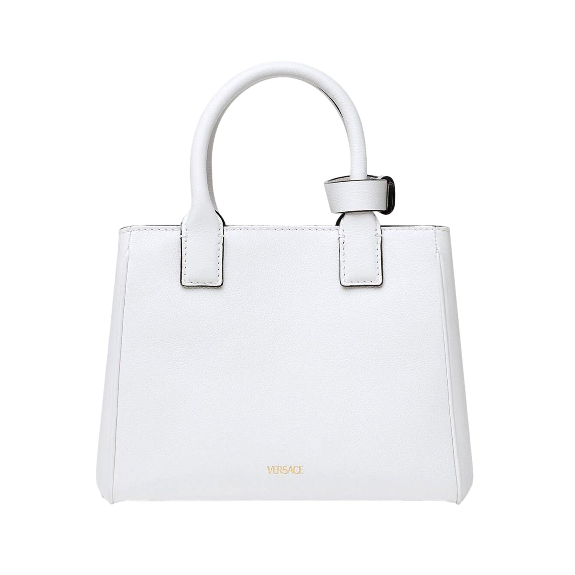 Versace La Medusa Gold Plaque White Leather Small Crossbody Tote Bag